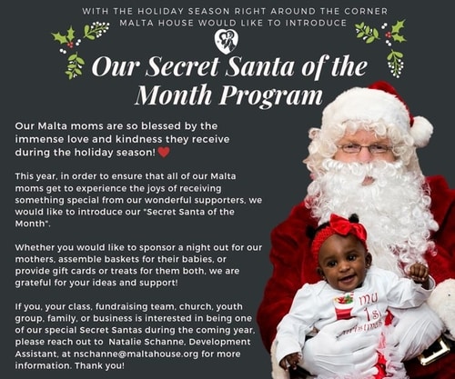 If you, your class, fundraising team, church, youth group, family, or business is interested in being one of our special Secret Santas during the coming year, please reach out to Natalie Schanne, Development Assistant, at nschanne@maltahouse.org for more information. Thank you!